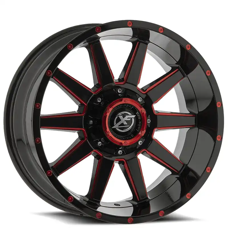 18″ XF Off-Road Wheels XF-219 Gloss Black with Red Milled Rims Best Seller