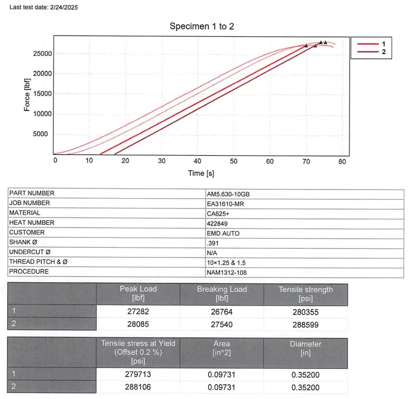 custom ARP 625+ head stud Kit, the ultimate solution for high-powered MQB engines. When building these engines, we frequently found that we were limited to ARP2000 head studs, which are tapered and weaker than stock head bolts. Having developed DAZA head studs to handle over 1,000 horsepower, we felt that it was necessary to bring to market a similar application for the 2.0T cars. Key Features: – Direct Replacement: Seamlessly replaces stock head bolts without the need for block or head modifications, ensuring hassle-free installation. – Maximum Clamp Load: Featuring a constant diameter shank, our studs deliver maximum clamp load, offering superior stability under extreme conditions. Some other kits use a reduced diameter shank, greatly reducing the holding capability. – Custom Bull Nose Design: Engineered with a custom bull nose, our studs fully out in the bottom out in the block, ensuring complete thread engagement for maximum clamping force. – Exceptional Strength: Boasting an impressive tensile strength from 260,000 to 280,000 psi, our ARP 625+ material outperforms any stud available on the market. Tensile strength reports can be viewed below. Crafted from genuine ARP 625+ material, our kit stands apart from generic inconel 625 or tool steel alternatives, providing uncompromising quality and performance you can trust. Whether you’re running a hybrid turbo setup or a powerful full frame kit, our custom ARP 625+ head stud kit offers the peace of mind you need for high-performance applications. For installation instructions, please click here. This kit will fit all E888 Gen 3 engines, such as: MK7 GTI MK7 Golf R A3 8V S3 8V
