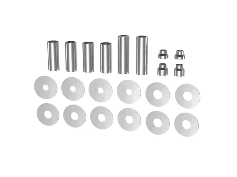 The ICON Vehicle Dynamics Lower Control Arm Hardware Kit for the 2005-2015 Toyota Tacoma includes all required components to size the pivot bushings on a pair of ICON front lower control arms to fit the frame mounts and OE mounting bolts/alignment cams. Misalignment spacers for the lower eyelet of aftermarket coilovers are also included to size the bearings to fit the control arm mounts. All components are CNC machined and laser cut to ensure an exact fit and a smooth install.