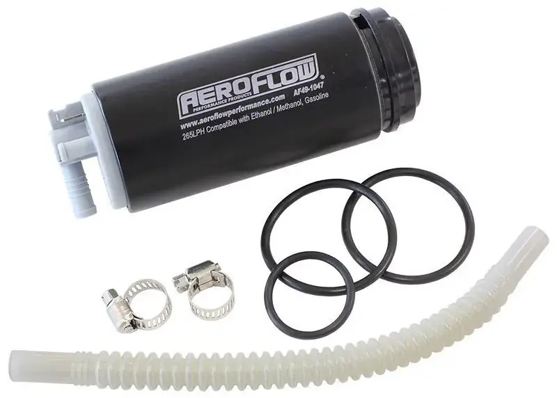 The Aeroflow Performance 265 LPH Hi-flow in-tank efi fuel pump. For such a compact and small design this fuel pump is capable of flowing 70 GPH (265 LPH) @ 40 Psi. With such a small and compact design it will fit in O.E.M modern European fuel tanks such as the Audi and VW that are all-wheel-drive configurations.