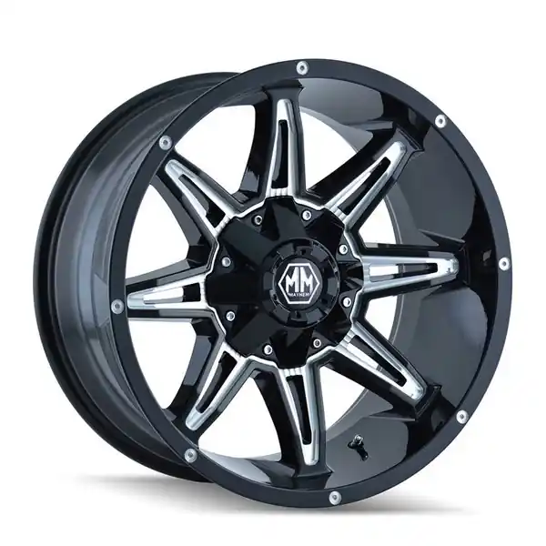 Special Discount Mayhem Wheels Rampage 8090 Gloss Black w/ Milled Spokes 20×9 18mm Offset 8×180