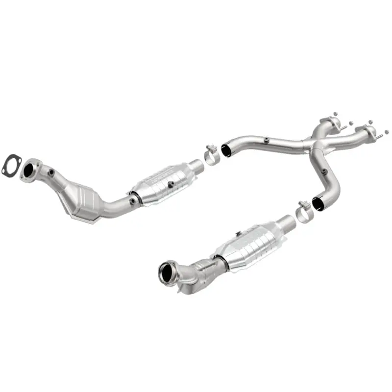 - MagnaFlow HM Grade Federal/EPA Compliant Direct-Fit Catalytic Converter 93671 helps keep the check engine light off. DIY installation is easy with the proper tools (no cutting or welding required). With features including mandrel-bent tubing to eliminate flow restrictions and stainless steel construction to resist corrosion, you can have confidence in the quality of this catalytic converter. Using state-of-the-art 3D scanning systems in the design process, the MagnaFlow metrology department ensures this new part to fit and function like the original equipment. This direct-fit catalytic converter is designed specifically for the 1999-2004 Ford Mustang and interchanges with OE parts 2R3Z-5F250-DA and XR3Z-5F250-EGL, among others. The included gaskets & hardware reduce the possibility of a leaking seal while avoiding the need to reuse corroded factory parts for installation. This replacement part is designed to meet or exceed Federal emissions requirements set forth by the EPA, complying with legal standards for OBDII Federally registered vehicles with Federal/EPA Emission systems.