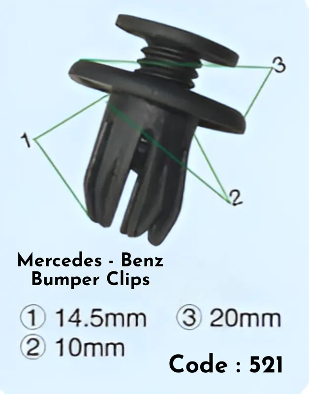 Secure your Mercedes-Benz bumper with this professional-grade clip set. Each of the 10 durable clips is engineered to fit Mercedes-Benz models precisely, ensuring reliable fastening without damage to your vehicle’s finish. These clips withstand vibration and road stress, maintaining bumper alignment through daily driving. Essential for repairs, replacements, or restoration work. Trusted by technicians for consistent performance and longevity.